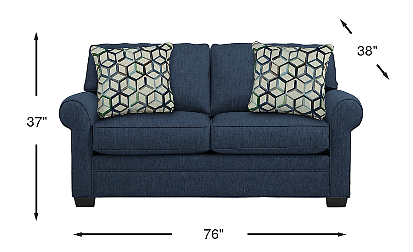 Your living room easily becomes a guest room with the versatile Bellingham sleeper loveseat. Upholstered in textured fabric, the loveseat boasts a midnight blue color. Effortless style is bestowed by reversible seat and back cushions with double welted boxed borders, matching toss pillows and padded rolled arms. The full size Sealy Royale Mattress pulls out to provide a good night's sleep. 100% Polypropylene