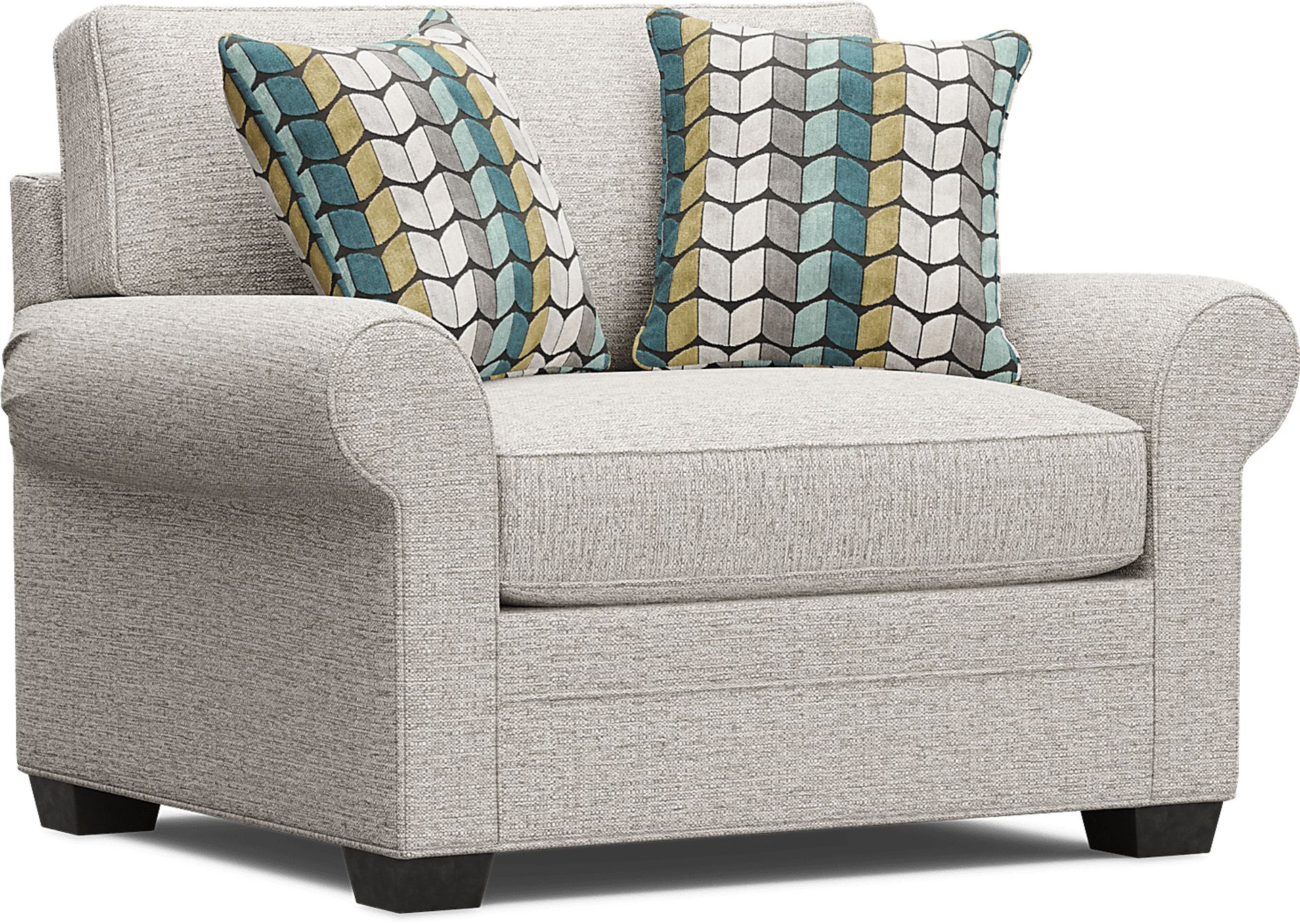 Timeless seating is here with the Bellingham sleeper chair from Cindy Crawford Home. Upholstered with textured chenille in an irresistible shade of mushroom gray, the chair features reversible back and seat cushions with double-welted boxed borders. Nestled away for overnight company, the Sealy Royale mattress that can be pulled out to create a comfortable guest suite for overnight company. Matching accent pillows and padded rolled arms add perfect final touches. 100% Polyester