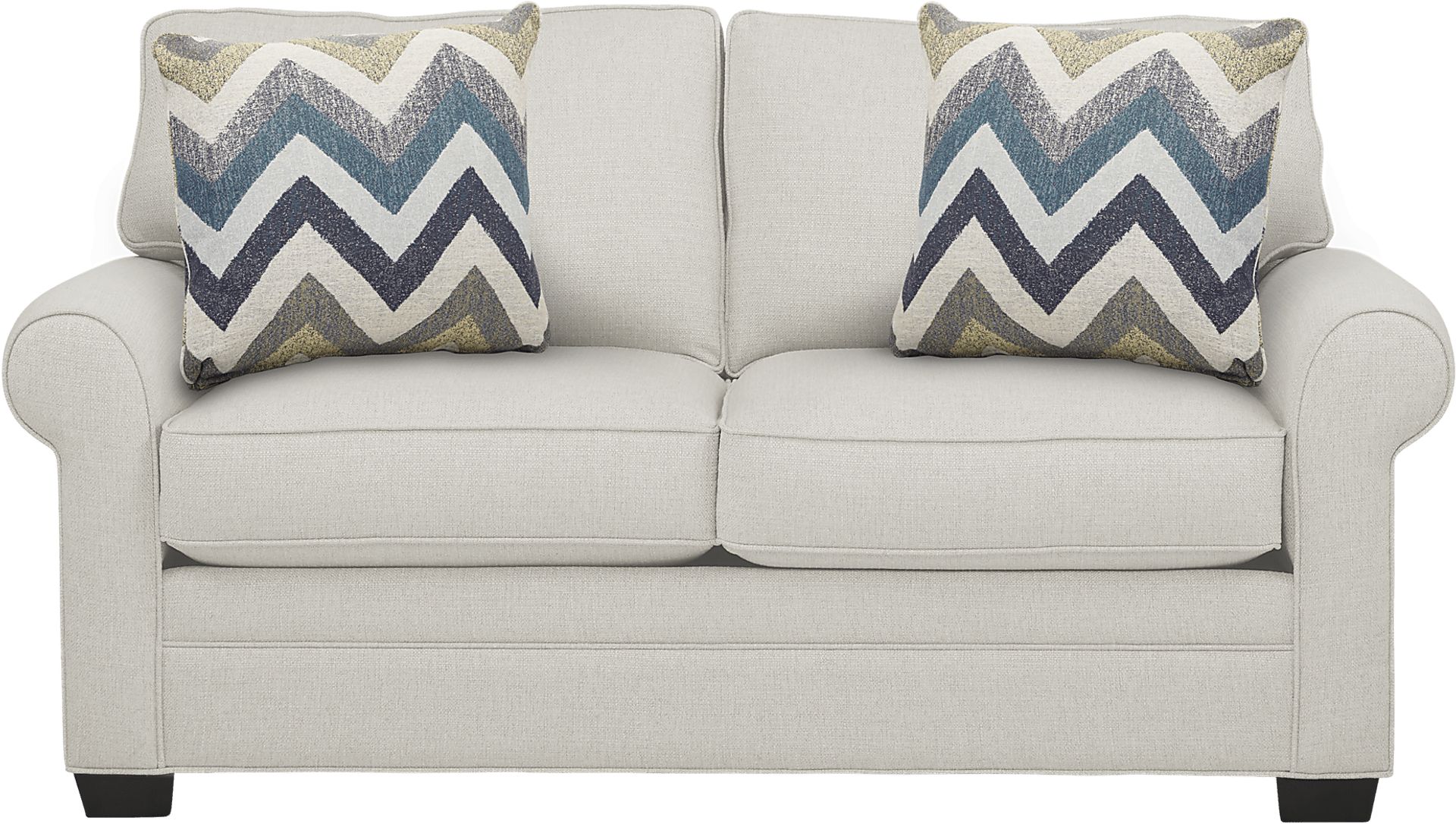 Your living room easily becomes a guest room with the versatile Bellingham sleeper loveseat. Upholstered in textured fabric, the loveseat boasts a decorator friendly off-white color. Effortless style is bestowed by reversible seat and back cushions with double welted boxed borders, accent toss pillows and padded rolled arms. The pull-out full size Gel Foam mattress features superior body contouring support that provides a cool, comfortable sleep environment. 100% Polypropylene