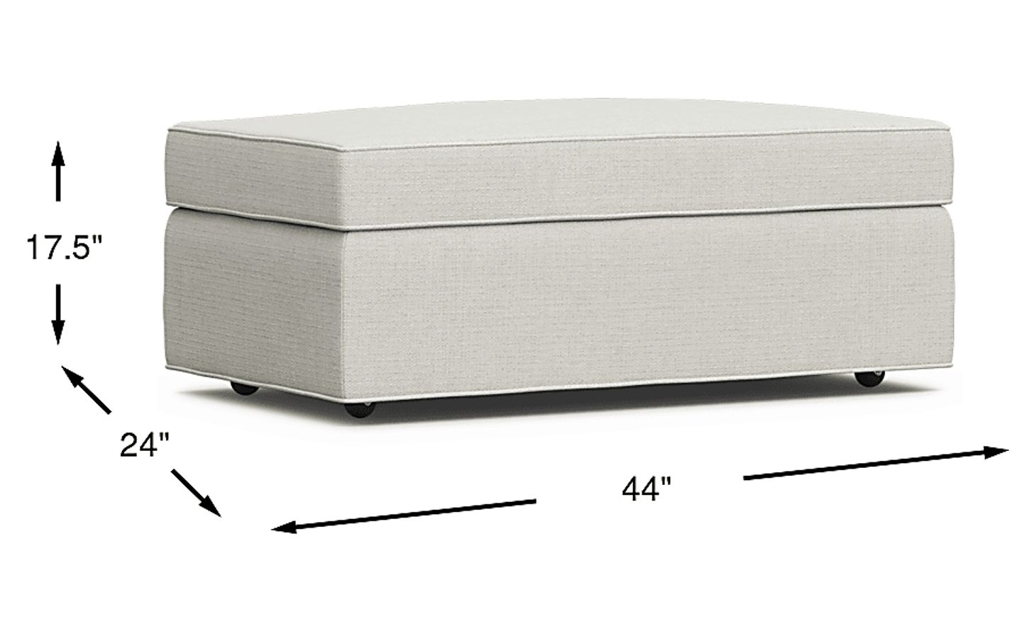 When selecting an ottoman, designers often recommend the "two-thirds rule," where the piece is approximately two-thirds the length of your sofa. With a width of 43.5 inches, this rectangular ottoman is perfectly scaled for standard three-cushion sofas or large sectionals. At 18.5 inches high, it is designed to sit level with or slightly below most standard sofa cushions, providing an ergonomic height for use as a comfortable footrest.