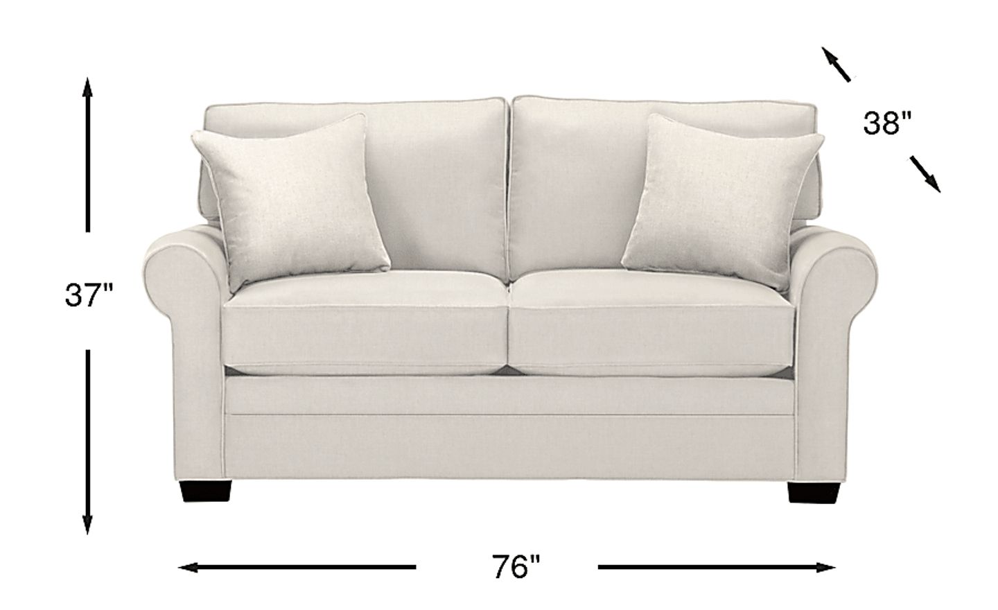 Timeless seating is here with the Bellingham loveseat from Cindy Crawford Home. Upholstered with textured fabric in an irresistible shade of sand beige, this piece features reversible back and seat cushions with double-welted boxed borders. Matching accent pillows and padded rolled arms add perfect final touches. 100% Polypropylene.