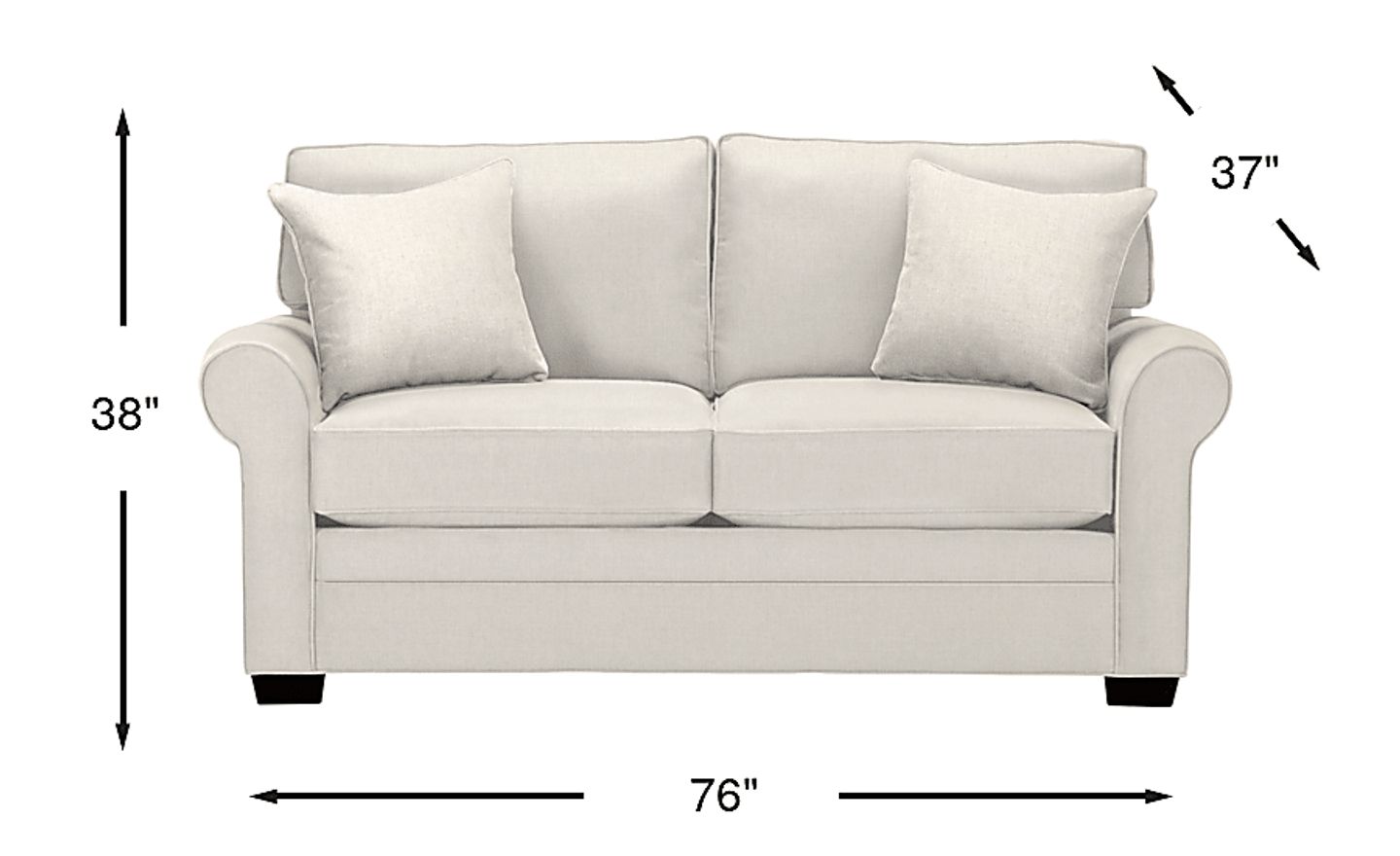 Timeless seating is here with the Bellingham sleeper loveseat from Cindy Crawford Home. Upholstered with textured fabric in an irresistible shade of sand beige, this loveseat features reversible back and seat cushions with double-welted boxed borders. A full size Sealy Royale mattress can be pulled out to create a comfortable guest suite for overnight company. Matching accent pillows and padded rolled arms add perfect final touches. 100% Polypropylene.