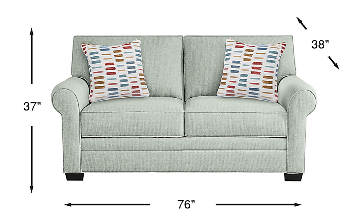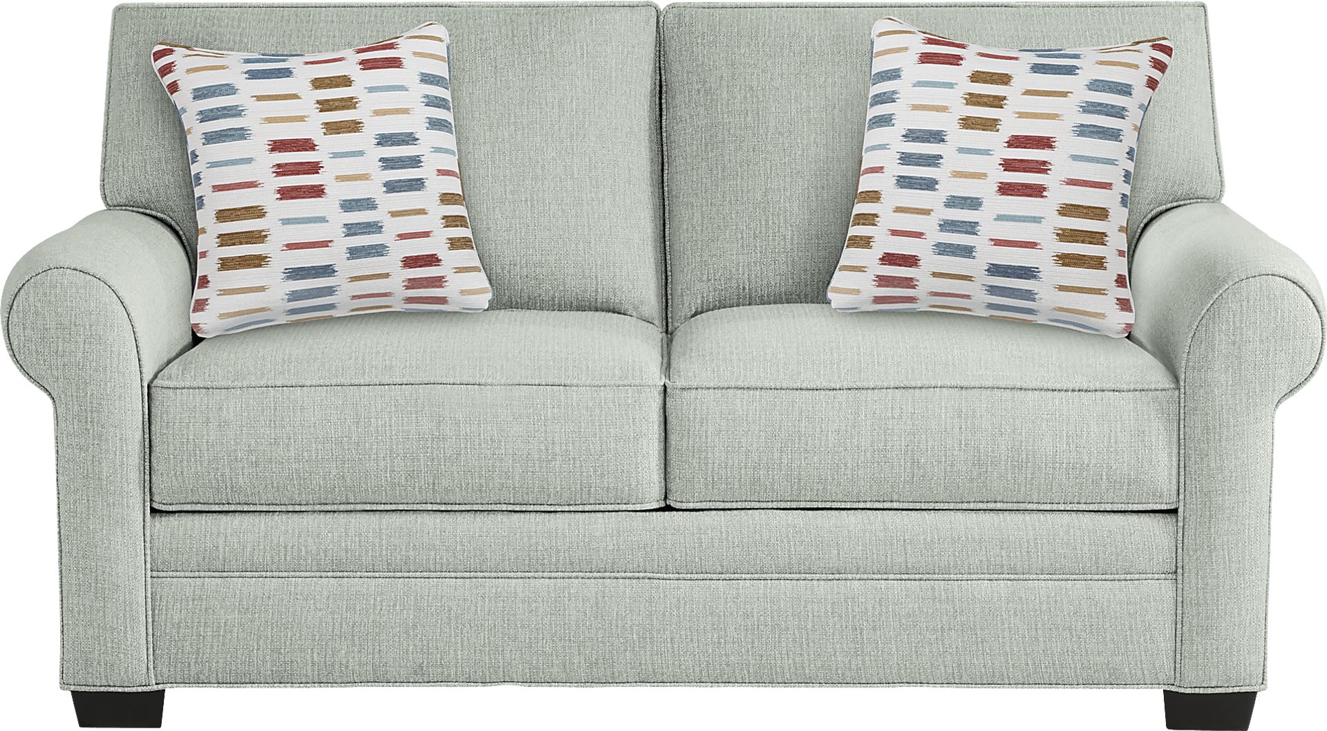 The Bellingham loveseat offers a relaxing and cozy seating option for two. With the feel of textured fabric in a willow green color, the upholstery combines premium comfort with long-lasting durability. For effortless style, reversible seat and back cushions with double welted boxed borders, accent pillows and padded rolled arms make this loveseat a wonderful choice. Upholstery: 100% Polypropylene