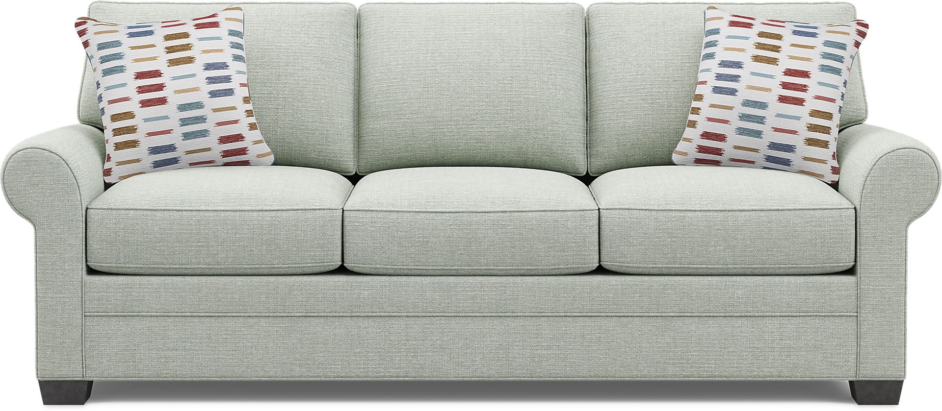 Comfortable, versatile and stylish, the Bellingham sleeper is a fantastic choice for your living room. Textured fabric in a willow green color provides premium feel and long-lasting durability. Double welted box bordered seat and back cushions, accent pillows, padded rolled arms and wood block legs offer superb support. Tucked away and easily pulled out for overnight guests, the sleeper boasts the exceptional comfort of a Sealy Royale queen size mattress. Upholstery: 100% Polypropylene