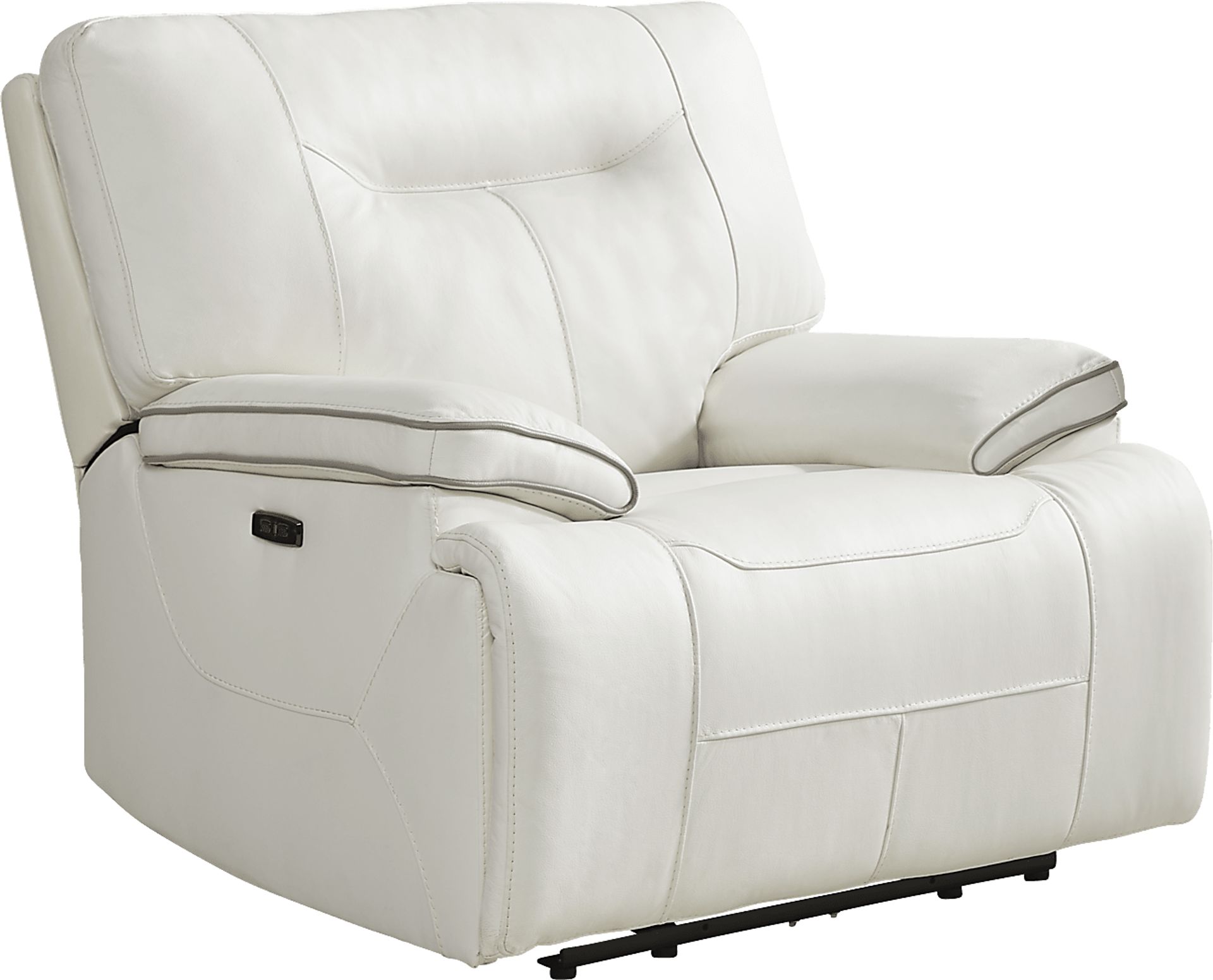 Perfect for those who like to entertain, the Bernsley dual power recliner from Cindy Crawford Home is an excellent choice. Transitional in style, this stunning recliner is upholstered in premium top grain leather where the body touches in a neutral white, and with the help of the dual power reclining feature, you and your guests can effortlessly relax and unwind. Upholstery: Top grain leather where the body touches and polyurethane sides and back. Leather is a durable, low maintenance product, however, general regular maintenance is necessary. To keep your leather clean, vacuum it regularly, removing any dust, and clean it with water and a mild non-detergent soap.
