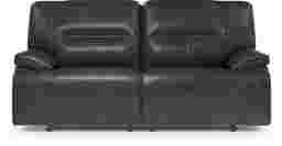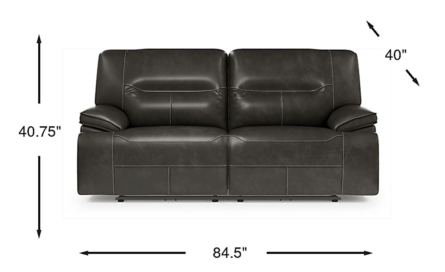 Showcasing a sleek frame, the Caletta reclining sofa from Cindy Crawford Home brings contemporary style to your living room. Designed with modern comfort, this sofa is upholstered with supple top grain leather where the body touches in gray. Great for kicking back, its reclining feature allows you to adjust the footrests to your ideal position. The addition of pillowtop arms gives it an extra dose of comfort. Upholstery: Top grain leather where the body touches and polyurethane sides and backs.