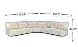 Contemporary style and comfortable seating are the highlights of the Caletta leather sectional from Cindy Crawford Home. Upholstered in top grain leather where the body touches in an off-white color, this sectional is a luxurious addition to your space. The inclusion of cupholders and a hidden storage console ensure that refreshments and all the other essentials are close at hand. Pillow arms, USB ports and power reclining mechanisms complete the piece for added comfort. Top grain leather where the body touches and polyurethane fabric sides and backs.