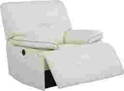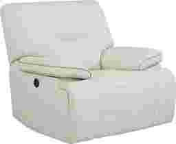 Perfect for lounging and enjoying your favorite show or sporting event, the Caletta leather power recliner from Cindy Crawford Home is a great option for your living space. Upholstered in top grain leather where the body touches in an off-white color, this luxurious piece will have you relaxing in style. The power reclining feature helps you kick back and relax any time while the USB port on the outside of the arm keeps your device charged. Upholstery: Top grain leather where the body touches and polyurethane sides and backs.
