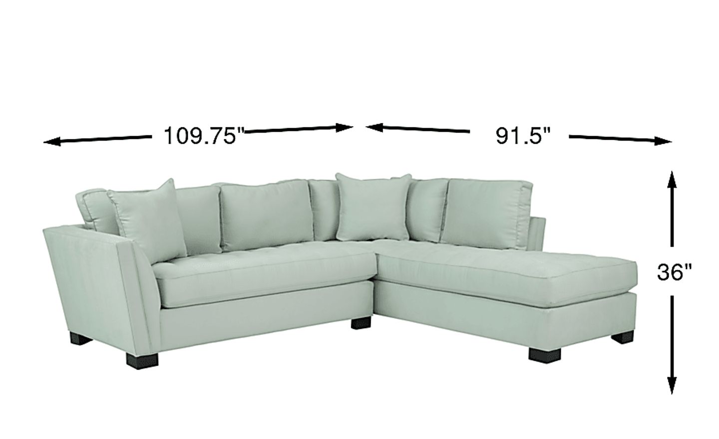 Stylish and highly versatile, the Calvin Heights sectional offers a classy, contemporary feel that is both elegant and inviting. Upholstered in durable Microfiber for deep, comfortable seating, its bold aqua color lends fantastic eye appeal. Perfect for living rooms, this sectional creates a designated gathering spot for family and friends. Premium design features include welting details, sleek track arms and bench-style seat cushions with chic tufting for a well-tailored silhouette. Quality constructed on a hardwood frame for strength and stability, its sinuous wire seating system provides long-lasting support. Matching solid colored pillows included. 100% Polyester. Accent pillows sold separately.