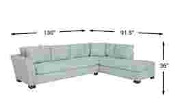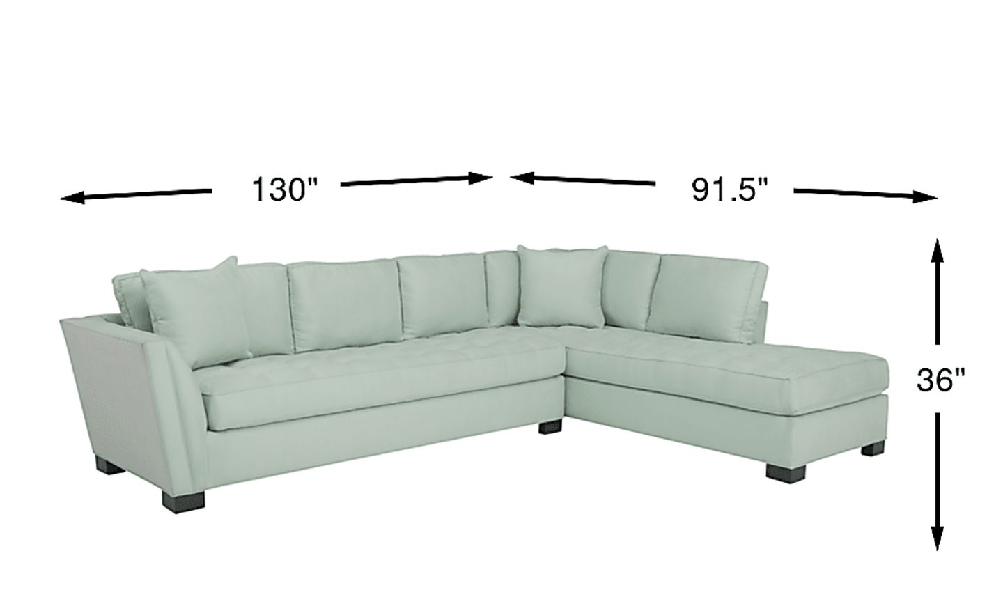 Stylish and highly versatile, the Calvin Heights sectional offers a classy, contemporary feel that is both elegant and inviting. Upholstered in durable Microfiber for deep, comfortable seating, its bold aqua color lends fantastic eye appeal. Perfect for large spaces, this expansive sectional easily turns your living room into a gathering spot for family and friends. Premium design features include welting details, sleek track arms and bench-style seat cushions with chic tufting for a well-tailored silhouette. Quality constructed on a hardwood frame for strength and stability, its sinuous wire seating system provides long-lasting support. Matching solid colored pillows included. 100% Polyester. Accent pillows sold separately.