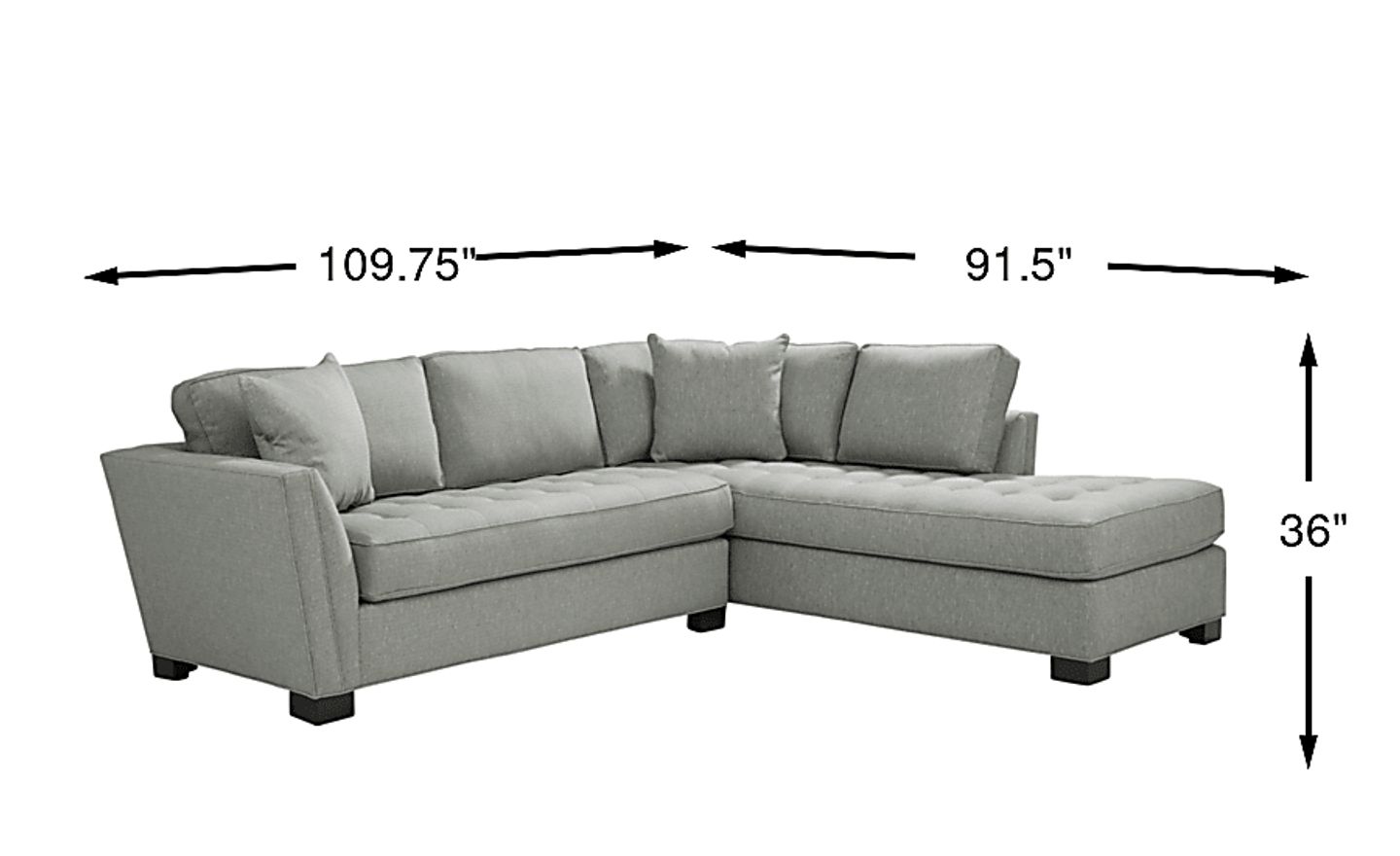Stylish and highly versatile, the Calvin Heights sectional offers a classy, contemporary feel that is both elegant and inviting. Upholstered in textured fabric for deep, comfortable seating, its bluestone color lends fantastic eye appeal. Perfect for living rooms, this sectional creates a designated gathering spot for family and friends. Premium design features include welting details, sleek track arms and bench-style seat cushions with chic tufting for a well-tailored silhouette. Quality constructed on a hardwood frame for strength and stability, its sinuous wire seating system provides long-lasting support. Matching solid colored pillows included. 100% Polypropylene. Accent pillows sold separately.