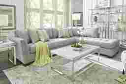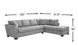 Stylish and highly versatile, the Calvin Heights sectional offers a classy, contemporary feel that is both elegant and inviting. Upholstered in textured fabric for deep, comfortable seating, its bluestone color lends fantastic eye appeal. Perfect for large spaces, this expansive sectional easily turns your living room into a gathering spot for family and friends. Premium design features include welting details, sleek track arms and bench-style seat cushions with chic tufting for a well-tailored silhouette. Quality constructed on a hardwood frame for strength and stability, its sinuous wire seating system provides long-lasting support. Matching solid colored pillows included. 100% Polypropylene. Accent pillows sold separately.