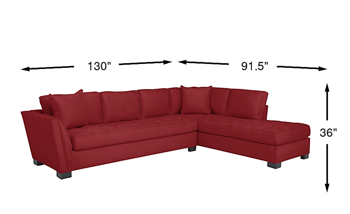 Stylish and highly versatile, the Calvin Heights sectional offers a classy, contemporary feel that is both elegant and inviting. Upholstered in durable Microfiber for deep, comfortable seating, its bold cardinal color lends fantastic eye appeal. Perfect for large spaces, this expansive sectional easily turns your living room into a gathering spot for family and friends. Premium design features include welting details, sleek track arms and bench-style seat cushions with chic tufting for a well-tailored silhouette. Quality constructed on a hardwood frame for strength and stability, its sinuous wire seating system provides long-lasting support. Matching solid colored pillows included. 100% Polyester.