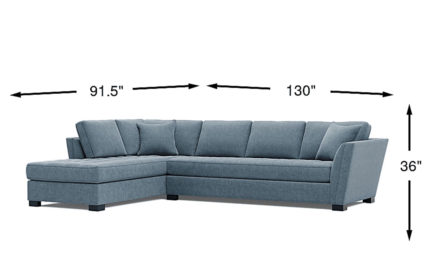 Stylish and highly versatile, the Calvin Heights XL sectional offers a classy, contemporary feel that is both elegant and inviting. Covered in thickly textured woven fabric that offers comfortable, deep seating for you and your guests, the chic chambray blue color lends fantastic eye appeal. Perfect for living rooms, this sectional creates a designated gathering spot for family and friends. Premium design features include welting details, sleek track arms and bench-style seat cushions with chic tufting for a well-tailored silhouette. Quality constructed on a hardwood frame for strength and stability, its sinuous wire seating system provides long-lasting support. Matching solid-colored pillows included. Upholstery: 100% Polyester. Accent pillows sold separately.