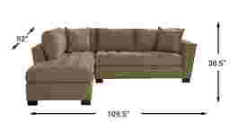 Stylish and highly versatile, the Calvin Heights sectional offers a classy, contemporary feel that is both elegant and inviting. Upholstered in durable Microfiber for deep, comfortable seating, its khaki color lends fantastic eye appeal. Perfect for living rooms, this sectional creates a designated gathering spot for family and friends. Premium design features include welting details, sleek track arms and bench-style seat cushions with chic tufting for a well-tailored silhouette. Quality constructed on a hardwood frame for strength and stability, its sinuous wire seating system provides long-lasting support. Matching solid colored pillows included. 100% Polyester. Accent pillows sold separately.