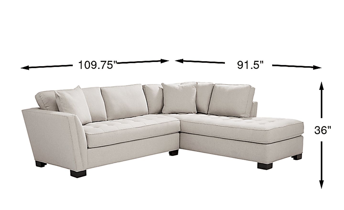 Stylish and highly versatile, the Calvin Heights sectional offers a classy, contemporary feel that is both elegant and inviting. Upholstered in textured fabric for deep, comfortable seating, its oatmeal color lends fantastic eye appeal. Perfect for living rooms, this sectional creates a designated gathering spot for family and friends. Premium design features include welting details, sleek track arms and bench-style seat cushions with chic tufting for a well-tailored silhouette. Quality constructed on a hardwood frame for strength and stability, its sinuous wire seating system provides long-lasting support. Matching solid colored pillows included. 100% Polypropylene. Accent pillows sold separately.