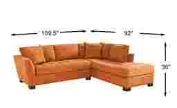 Stylish and highly versatile, the Calvin Heights sectional offers a classy, contemporary feel that is both elegant and inviting. Covered in thickly textured woven fabric that offers comfortable, deep seating for you and your guests, the chic russet orange color lends fantastic eye appeal. Perfect for living rooms, this sectional creates a designated gathering spot for family and friends. Premium design features include welting details, sleek track arms and bench-style seat cushions with chic tufting for a well-tailored silhouette. Quality constructed on a hardwood frame for strength and stability, its sinuous wire seating system provides long-lasting support. Matching solid-colored pillows included. Upholstery: 100% Polyester. Accent pillows sold separately.