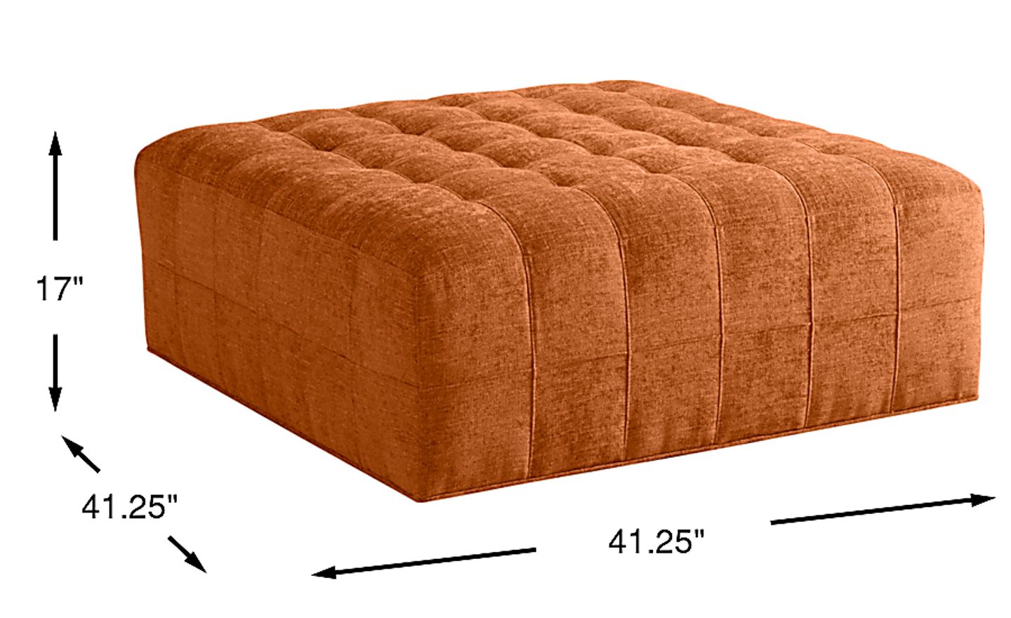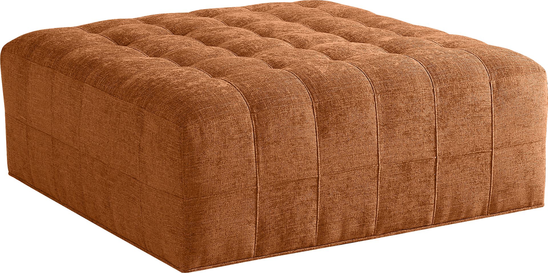 Sumptuously upholstered in thickly textured woven fabric, the Calvin Heights cocktail ottoman is an amply sized piece that you're sure to love. It's so versatile that you can use it in place of a traditional coffee table, as an extra seat for guests or even as a footrest. The eye-appealing russet orange color combines with elegant tufting and a boldly crisp silhouette. Four non-lockable recessed ball bearing casters make it easy to move this piece around, so you can change it up to accommodate you and your guests' needs. Upholstery: 100% Polypropylene