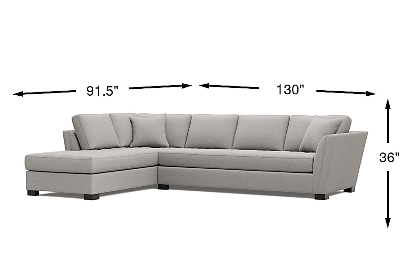 Stylish and highly versatile, the Calvin Heights XL sectional offers a classy, contemporary feel that is both elegant and inviting. Covered in thickly textured woven fabric that offers comfortable, deep seating for you and your guests, the stylish smoke gray color lends fantastic eye appeal. Perfect for living rooms, this sectional creates a designated gathering spot for family and friends. Premium design features include welting details, sleek track arms and bench-style seat cushions with chic tufting for a well-tailored silhouette. Quality constructed on a hardwood frame for strength and stability, its sinuous wire seating system provides long-lasting support. Upholstery: 100% Polyester.