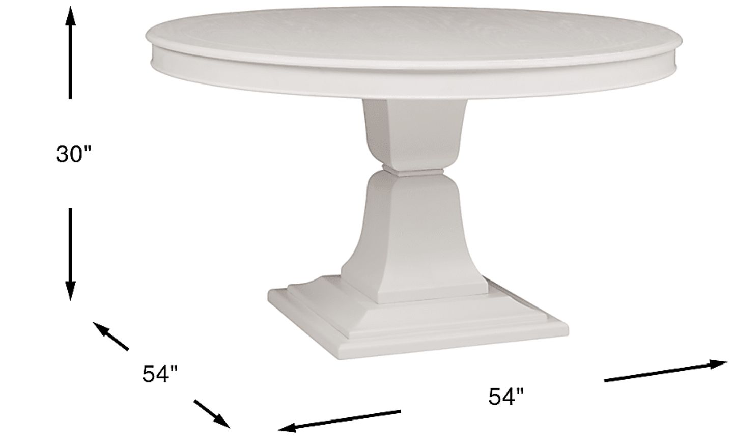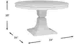 Bring the charming look of cottage styling into your home with the Cape Cottage pedestal table. Made with oak solids, the table has a 54 inch round top supported by a traditional style pedestal base. The painted white finish lends an all-around fresh aesthetic.