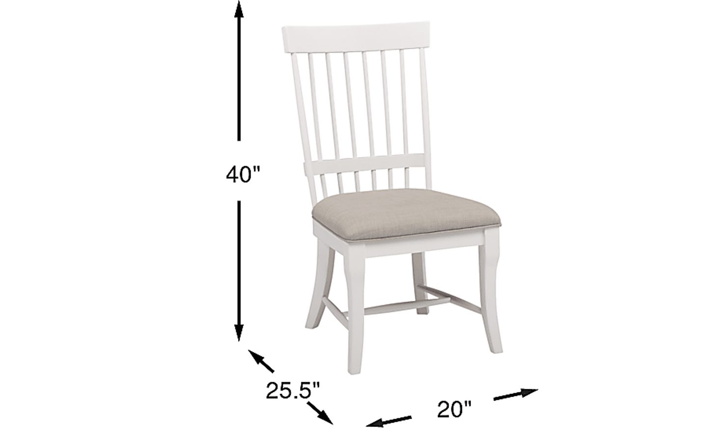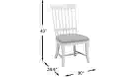 The slat back design on this Cape Cottage Windsor style side chair is simple, yet stylish. Crafted of oak solids, the chair has a crisp white finish. The padded seat cushion in a neutral color provides comfort while seated for meals.