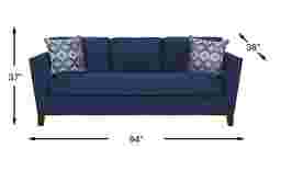 The fashion-forward Central Boulevard sofa sets the tone for chic contemporary living that you'll love coming home to. Characterized by a sleek silhouette and tufted detailing, the sofa is set on a slender wood base with slim tapered legs. More than just a showpiece, the sofa is cozy too thanks to textured fabric in a cobalt blue color. Toss pillows in a designer style ogee pattern lend the perfect finishing touch. Upholstery: 100% Polyester.