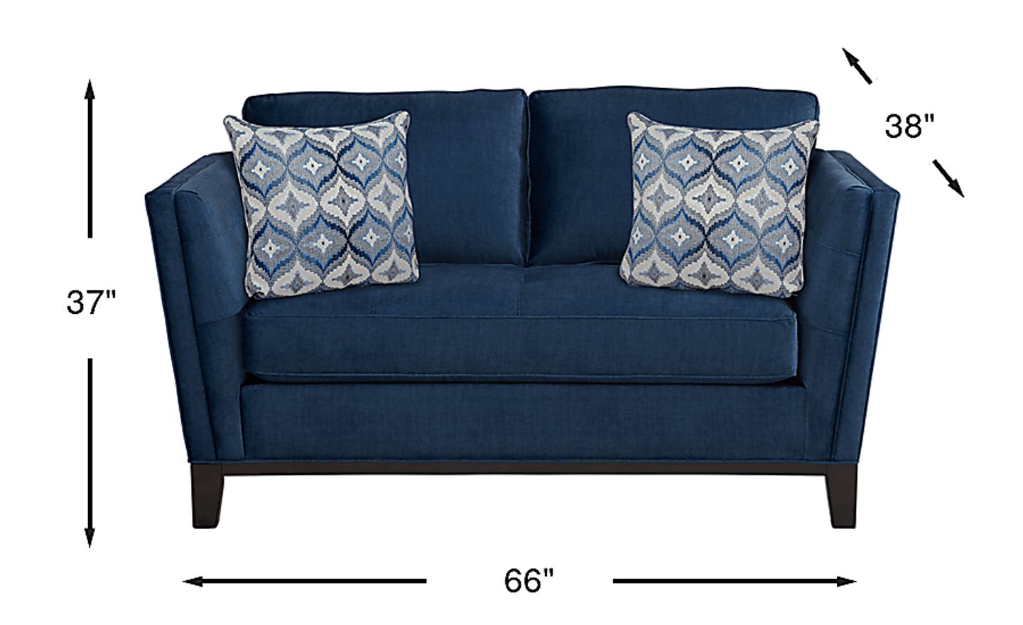 Unwind in style with the Central Boulevard loveseat. This cozy spot for two is upholstered in plush fabric in an ink blue color. Welting details and slim tapered track arms are accented by tufting along the seat cushions and inside arms for a tailored silhouette. The sleek wood base and tapered legs add to the contemporary aesthetic. Decorative accent pillows in a decorative motif complete the look. Upholstery: 100% Polyester
