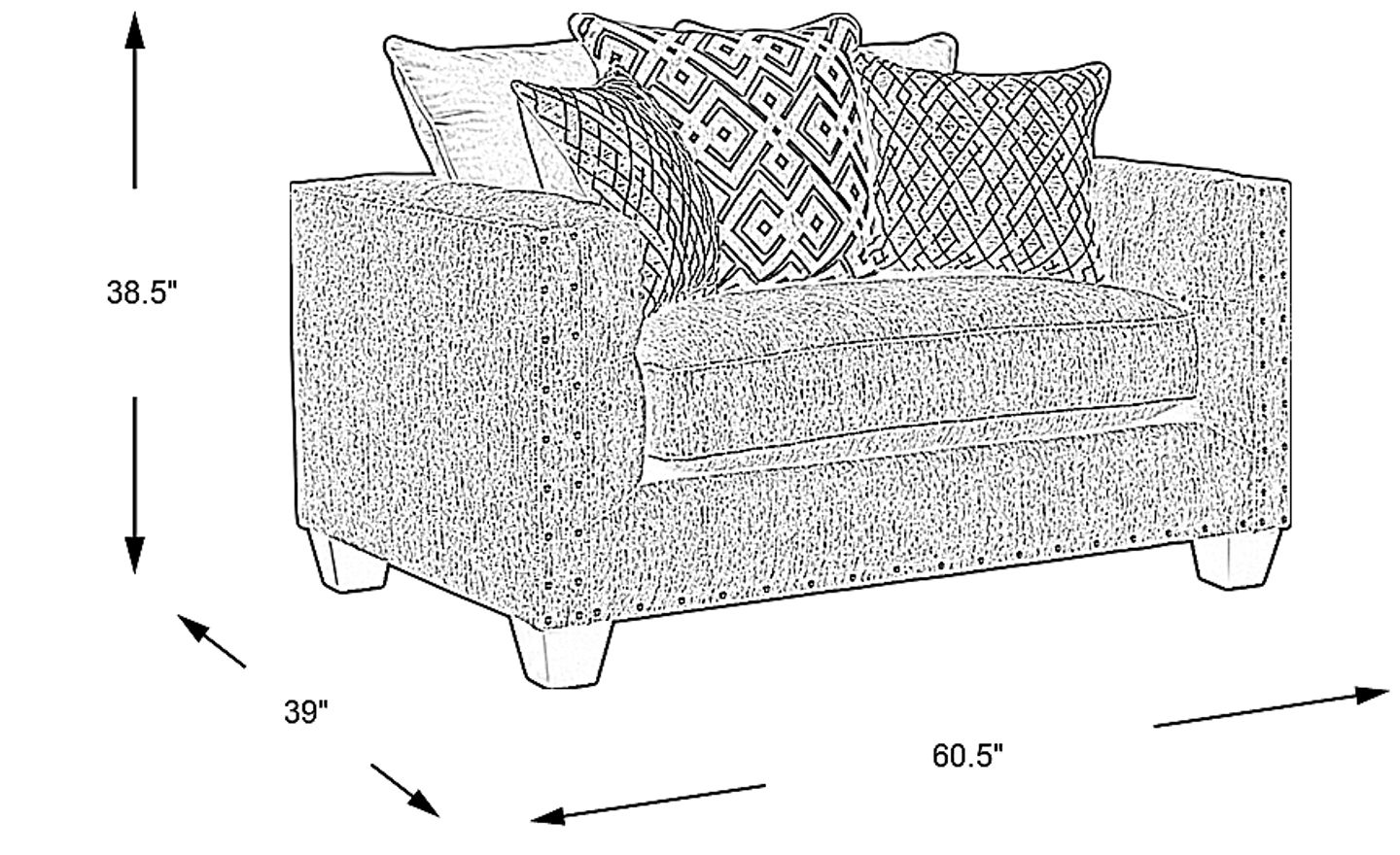 Large enough to curl up on with room to spare, the Chelsea Hills chair adds a plush sense of style to your living space. Upholstered in gray woven fabric, this oversized chair features a loose scattered pillow back with a mix of solid charcoal, light gray and chic geometric patterned pillows offering customizable support. Sleek track arms are embellished with elegant interior button tufting, while brushed nickel nailhead accents add the final touch of sophistication to this inviting chair. 72% Polyester, 28% Acrylic