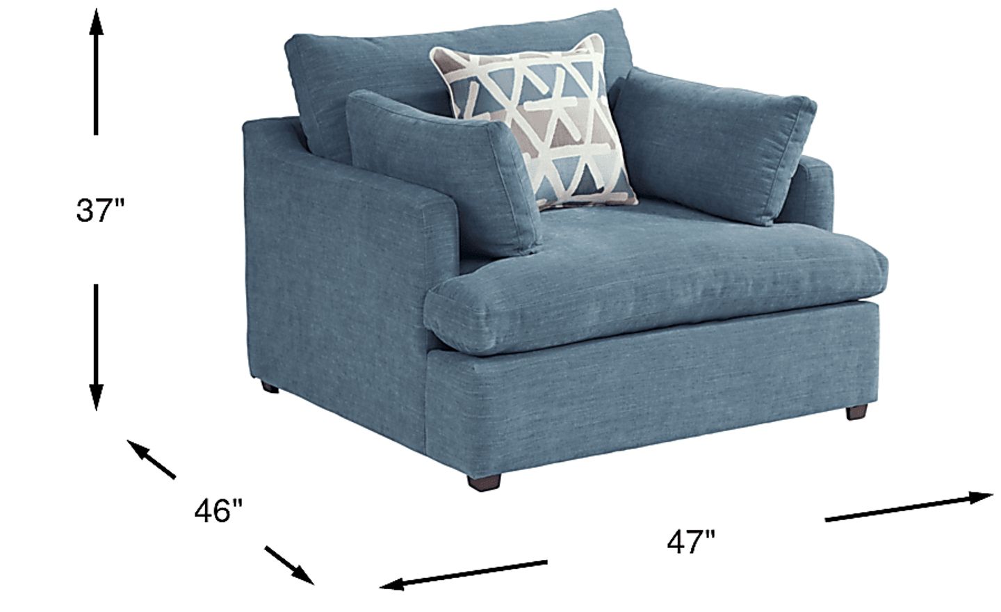 The Emerson Park chair boasts a plush chenille woven fabric in a delightful denim blue sure to add a casual vibrancy to any living room. The feather blend seat cushions, accent pillows, and oversized layout are perfect for lounging while sophisticated track arms and contemporary styling fuse chic style with cozy comfort. Hardwood frames are reinforced and padded for a tailored look that offers durability, strength and longevity. Upholstery: 100% Polyester