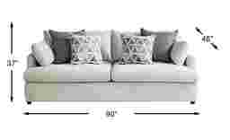 The Emerson Park sofa boasts a plush chenille woven fabric in a delightful silver sure to add a casual vibrancy to any living room. The feather blend seat cushions and accent pillows are perfect for lounging while sophisticated track arms and contemporary styling fuse chic style with cozy comfort. Hardwood frames are reinforced and padded for a tailored look that offers durability, strength and longevity. Upholstery: 100% Polyester