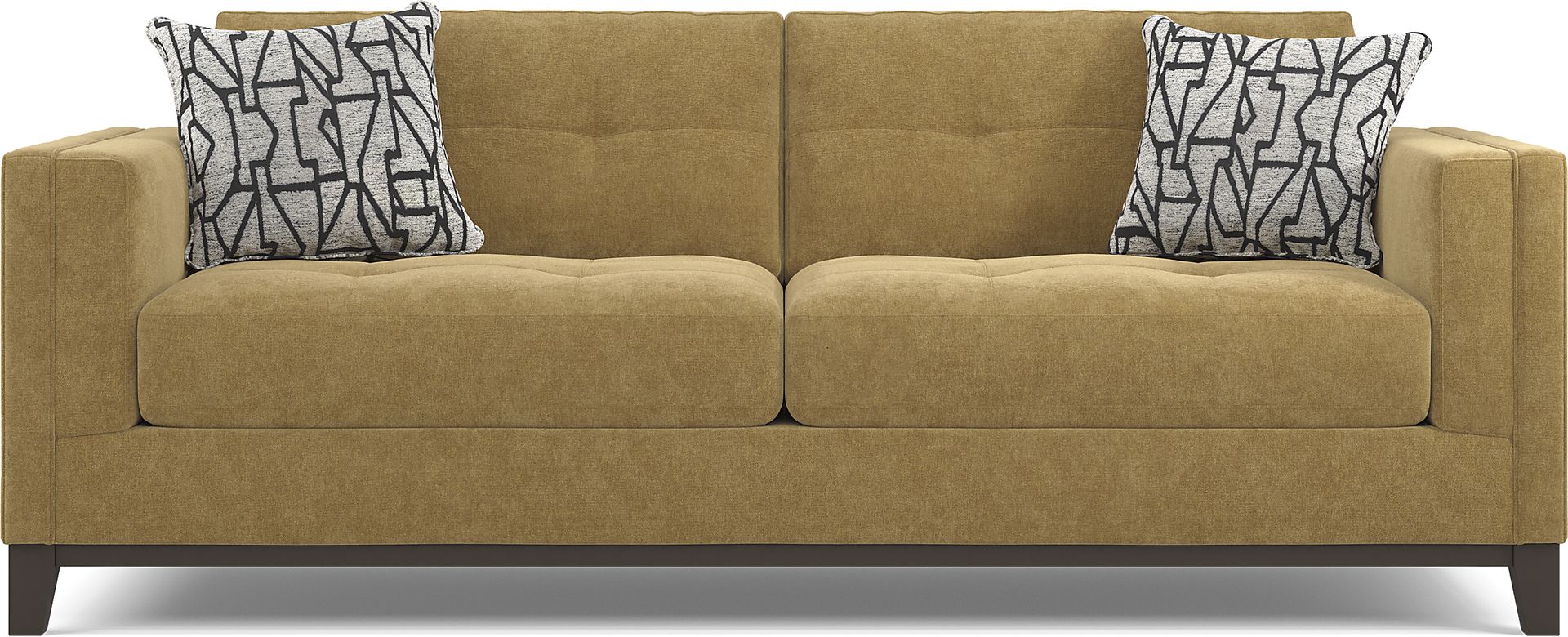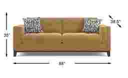 Blending supreme comfort with versatile transitional style, the Everleigh Place sofa from Cindy Crawford Home is a wonderful choice. Upholstered in a plush chenille fabric, this piece comes in a topaz color that is pleasing to the eye. Featuring padded track arms and an espresso-finished wood base, this sofa is great for those looking to make a statement with their space. 100% Polyester.