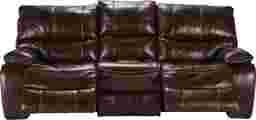 Comfortable and stylish, the Gianna power reclining sofa is the answer to your seating needs. Upholstered in chic brown top grain leather where the body touches, this piece boasts dense foam seating and a padded frame, while pub back bucket seats, padded chaise footrests, and soft pillowtop track arms all aid in the sophisticated comfort of this exceptional sofa. Contrast welt stitching details add a quality touch, while reinforced corner blocks and sinuous wire seating offers stability and support, making it a beautiful addition to any home. For additional comfort, this sofa reclines at the push of a button. Top Grain Leather Where the Body Touches and Vinyl Sides and Backs.