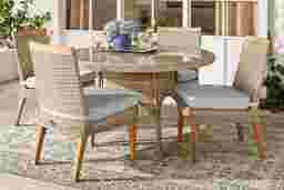 Cindy Crawford Home Hamptons Cove Gray 5 Pc Round Outdoor Dining Set With Rollo Seafoam Cushions