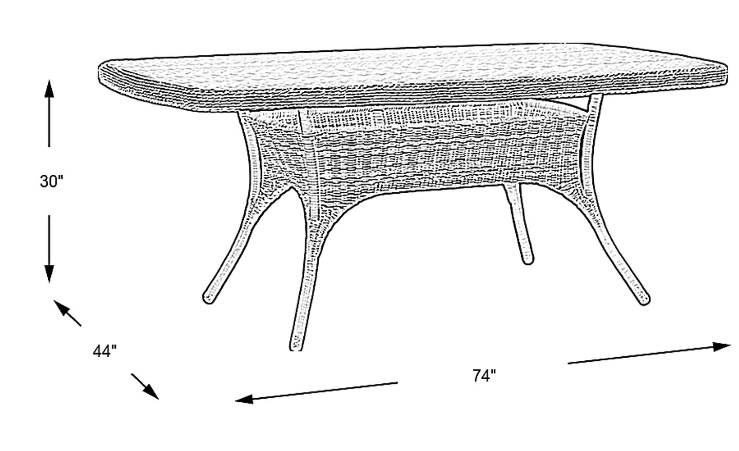 74.00"w x 44.00"d x 30.00"h