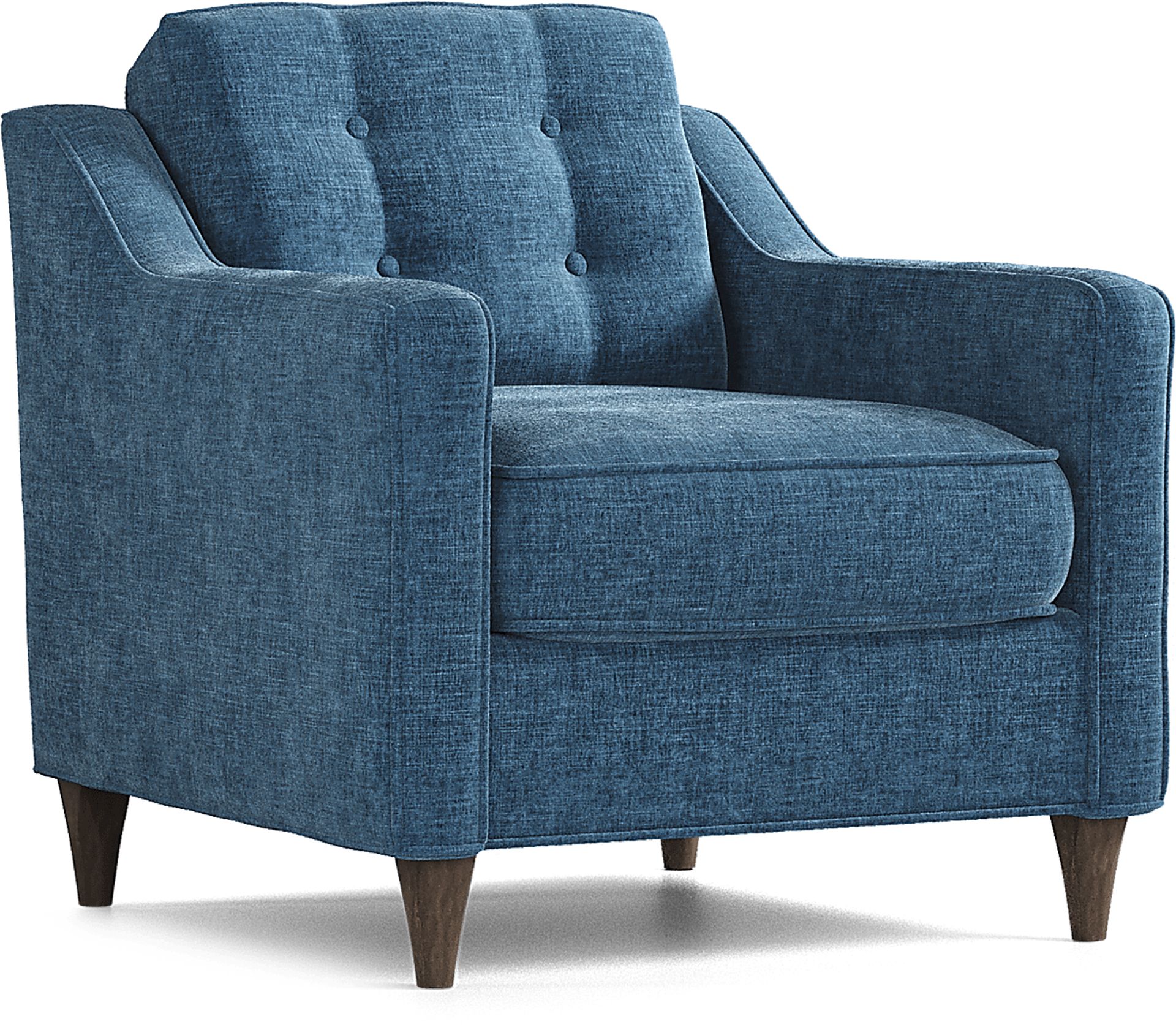 Boasting a chic modern look, the Hanover chair from Cindy Crawford Home combines comfort and style. Upholstered in soft chenille fabric, this piece features a vibrant ocean blue color to refresh your space. Sleek track arms, welting details and tufting on the back cushion give it a designer look. Offering form and function, its tapered legs claim a dark espresso finish. 100% Polyester