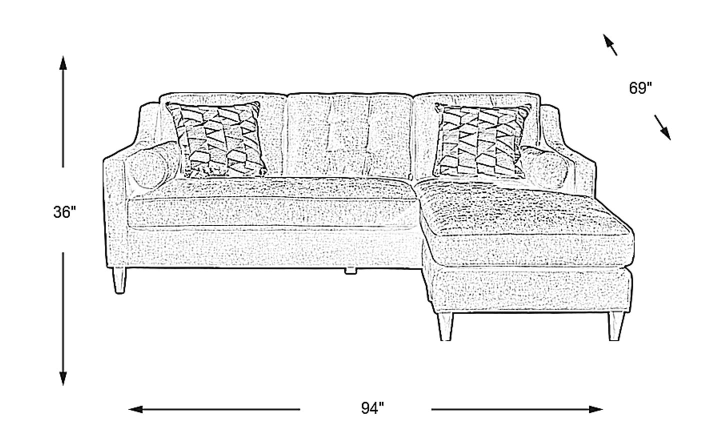 94"w"w x 69"d"d x 36"h"h