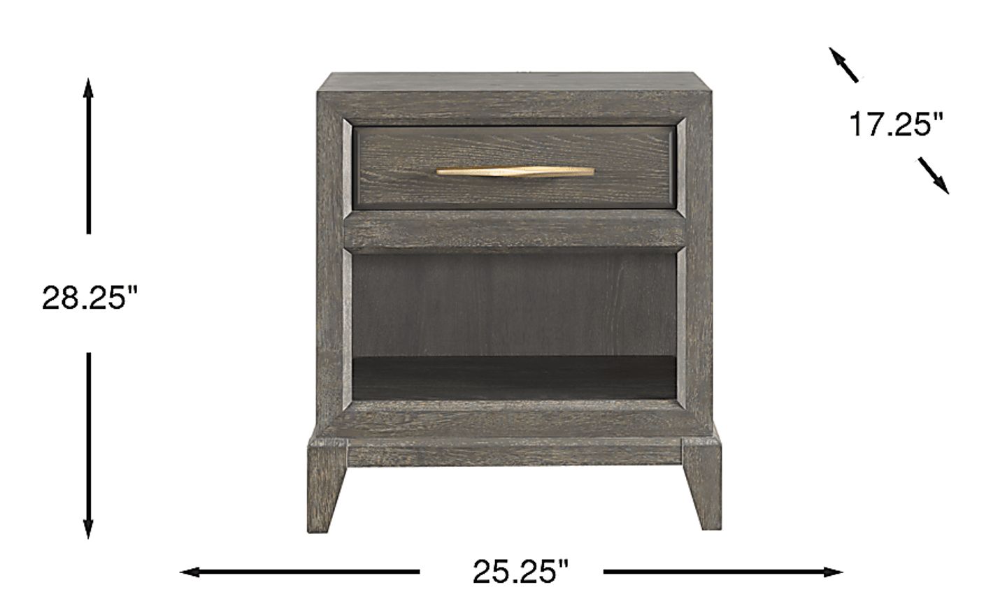This nightstand features elegant gold hardware that acts as a sophisticated focal point against the dark charcoal finish. This metallic accent makes it easy to coordinate with other contemporary or transitional pieces. For a cohesive look, you might pair it with gold-based table lamps or wall art featuring similar metallic tones, creating a polished and intentional bedroom design.