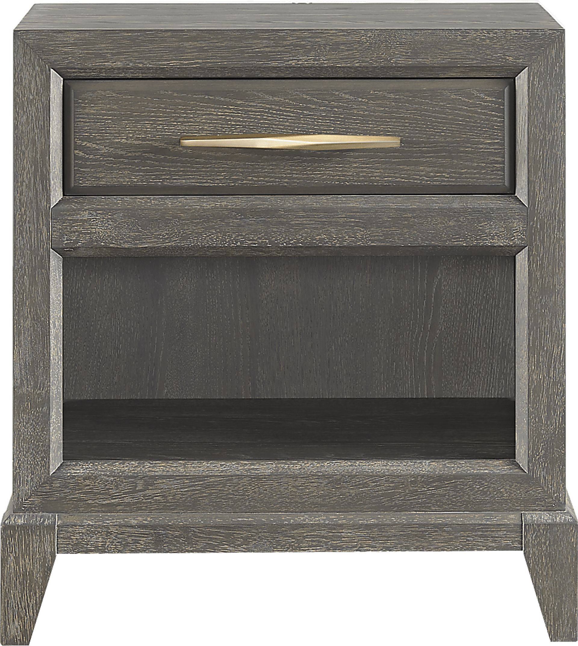 Bring contemporary flair and versatile storage space to your bedside with the Kailey Park nightstand from Cindy Crawford Home. With oak veneer surfaces in a charcoal finish, this piece features a drawer with beautiful gold hardware that is perfect for keeping your bedroom essentials organized and close at hand. Utilize the shelf space at the bottom for displaying your favorite books, magazines and much more.