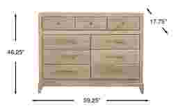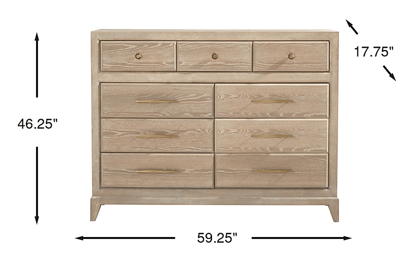 The Kailey Park dresser from Cindy Crawford Home brings stunning contemporary looks to your bedroom. Crafted of hardwood solids and oak veneers in a light oak finish, this piece features beautiful gold hardware and plenty of storage space. Not only does this dresser feature nine drawers for storing clothes and other essentials, but ample space on the top for displaying decor or its matching mirror.