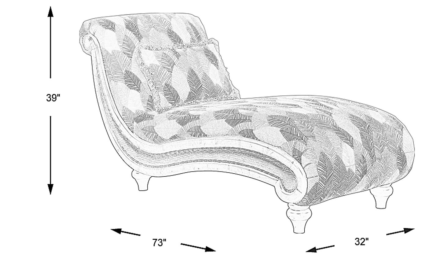 With its charming tropical elements the Key West Palms chaise is a beautiful choice for your home. The flowing shape covered by a leaf print - with a matching fringed accent pillow - is enhanced by wood accents with rattan inlays and braided trim. 93% Polyester, 7 % Acrylic