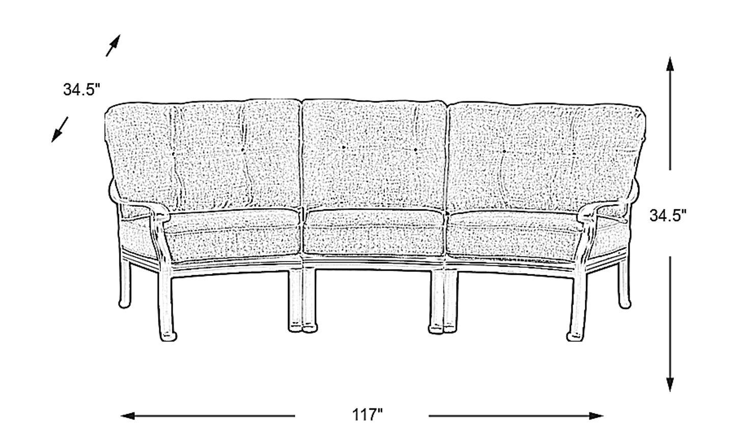 117"w"w x 34.5"d"d x 34.5"h"h