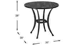 Come together for dining and refreshments with the beautiful Lake Como outdoor dining table. Featuring a traditional design highlighted by aluminum construction in an antique bronze finish, the table has a classic look that'll never go out of style. A 30-inch round top is perfect for enjoying a poolside lunch or drinks on the balcony.