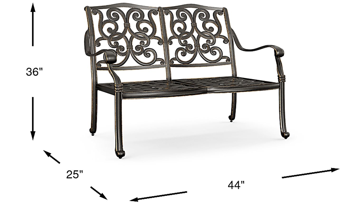 Graceful and elegant, the Lake Como outdoor bench is inspired by French Quarter architecture. Made with a premium solid cast 100% aluminum frame, the bench has a rust resistant all-weather powder coat finish with a hand applied antique bronze finished UV protected top coat. It also boasts a scrolled back design and curved arms, perfect for a summer's day. Sunbrella performance fabric covered seat cushions pair perfectly with this piece.