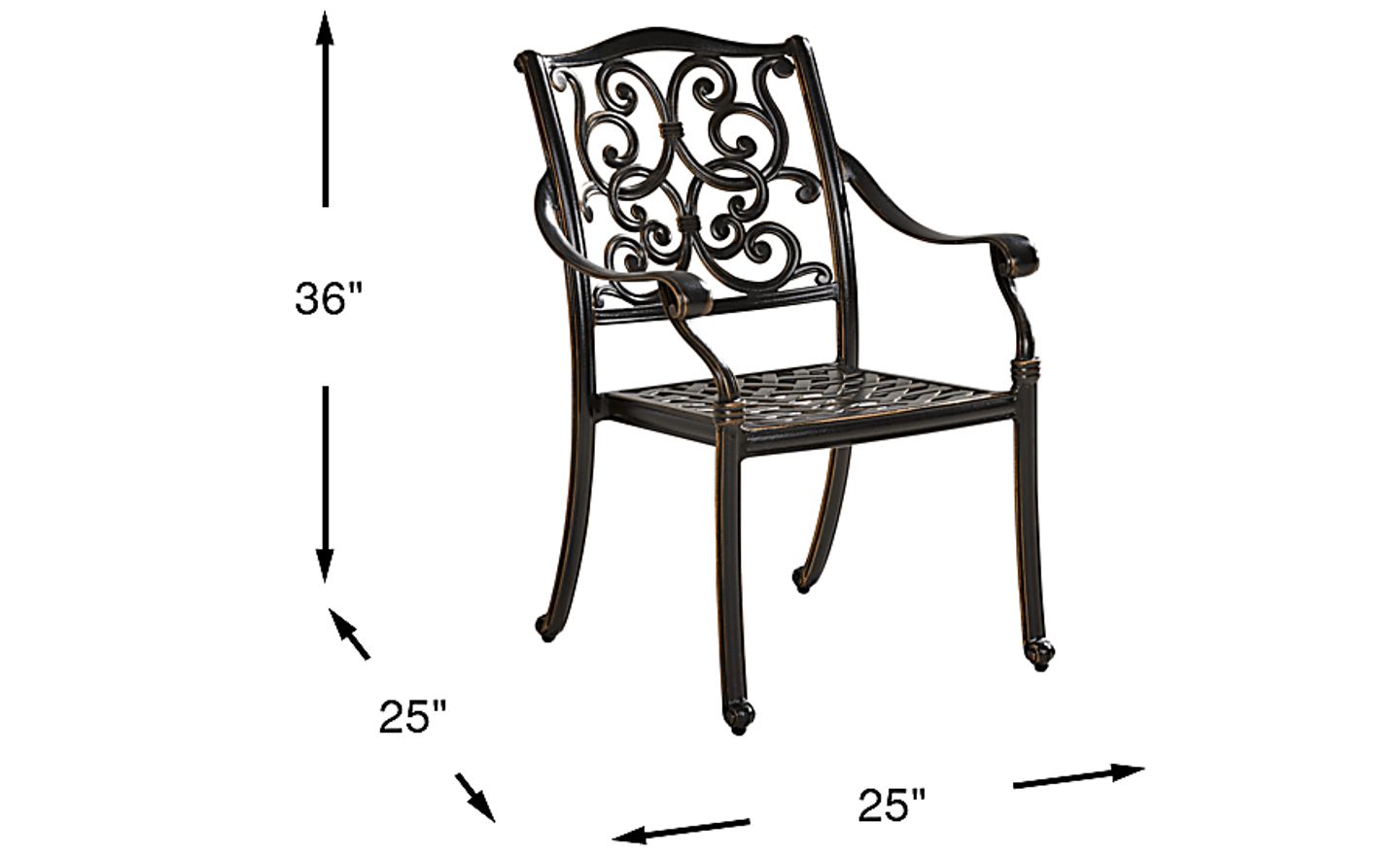 Kick back and relax in style with the Lake Como arm chair. Cast from aluminum in a beautiful antique bronze finish that will hold up, this chair is built to last. The traditional style of this chair features a swirling motif invoking a natural look.