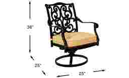 Kick back and relax in style with the Lake Como swivel rocker arm chair. Cast from aluminum in a beautiful antique bronze finish that will hold up, this chair is built to last. The traditional style of this chair features a swirling motif and durable ash colored Sunbrella performance fabric covered seat cushion. Swivel and rocking capabilities provide additional ways to unwind. 100% Sunbrella fabric. To clean Sunbrella fabric cushions remove dirt and spray on cleaning solution (water and mild soap), then use a soft bristle brush or sponge. Allow cleaning solution to soak into fabric and rinse thoroughly until soap residue is removed. Air dry. Do not dry clean.