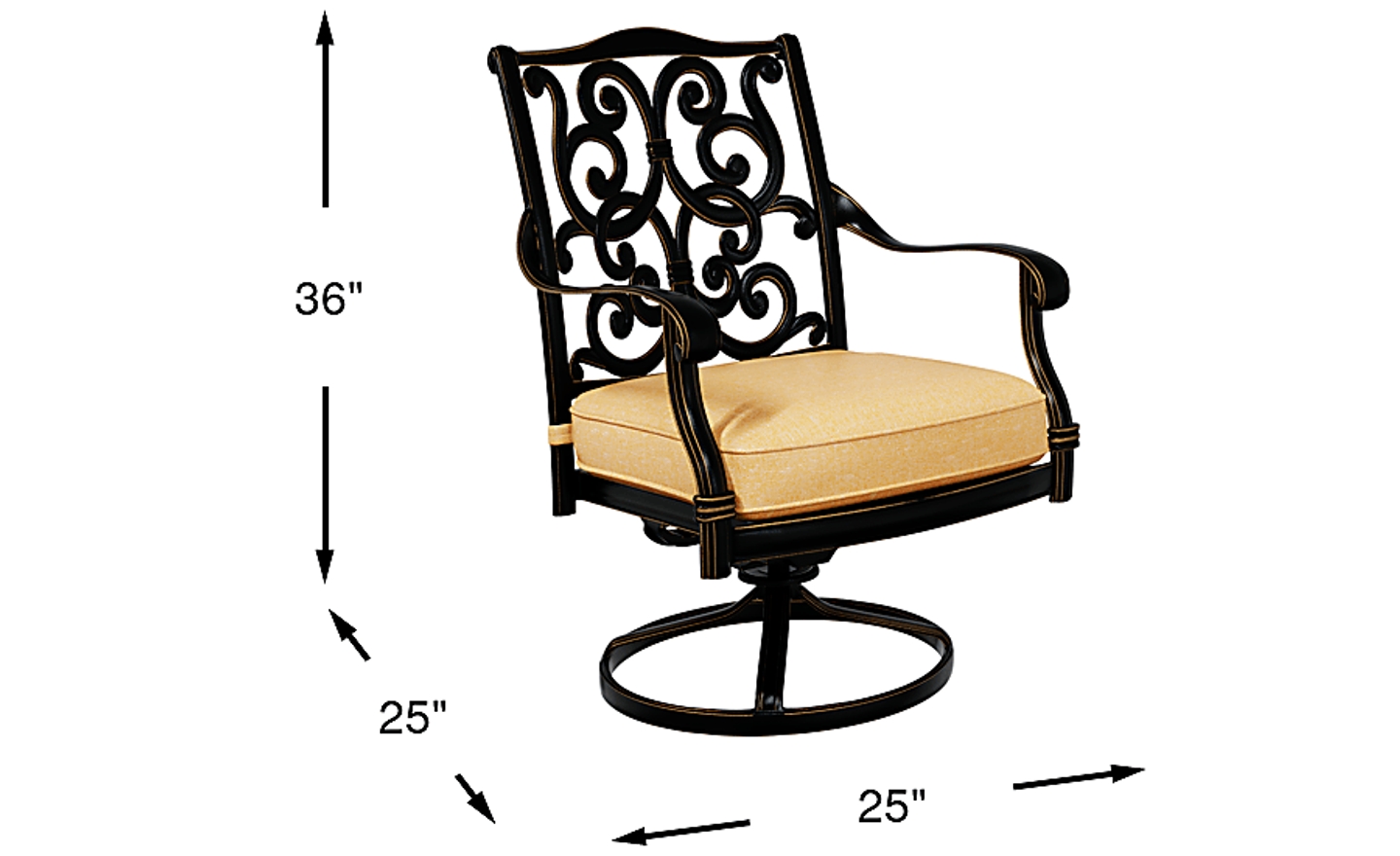 Cindy Crawford Home Lake Como Antique Bronze Outdoor Swivel Rocker Arm Chair With Gold Cushion