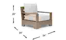 This chair is an excellent choice for coastal homes or poolside decks. The eucalyptus wood frame naturally resists the moisture and humidity typical of these areas, while the Sunbrella cushions are specifically engineered to withstand exposure to salt air and chlorine without degrading. To preserve the weathered gray finish in coastal climates, we recommend occasionally rinsing the frame with fresh water to remove any salt residue.