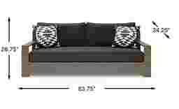 Set up your outdoor space in stylish comfort with the Lake Tahoe sofa. Durable too, the slat back sofa is made with long lasting eucalyptus wood in a weathered wire brushed gray finish. Thick char (charcoal) cushions are covered in fade, mold and mildew resistant Sunbrella fabric, while a pair of accent pillows add a chic finishing touch. 100% Sunbrella fabric. To clean Sunbrella fabric cushions remove dirt and spray on cleaning solution (water and mild soap), then use a soft bristle brush or sponge. Allow cleaning solution to soak into fabric and rinse thoroughly until soap residue is removed. Air dry. Do not dry clean.