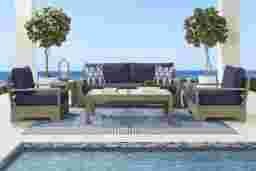 Lake Tahoe Gray Outdoor Sofa With Indigo Cushions