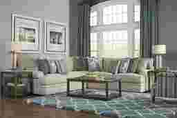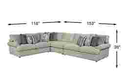 Unwind in style with the chic Lincoln Heights sectional, offering equal parts transitional design and luxurious comfort. Upholstered in soft textured woven fabric in a neutral beige color, this sectional features indulgently plush FeatherPlush seating with the enhanced comfort of memory foam technology. Each seat cushion is filled with a blend of feather, down, and conjugated polyester fiber. Double welted seat cushions offer a clean, tailored appearance, while roll arms contribute to the laidback feel. A mix of striped and patterned feather blend chenille accent pillows add an ample dose of personality. 100% woven poly chenille.